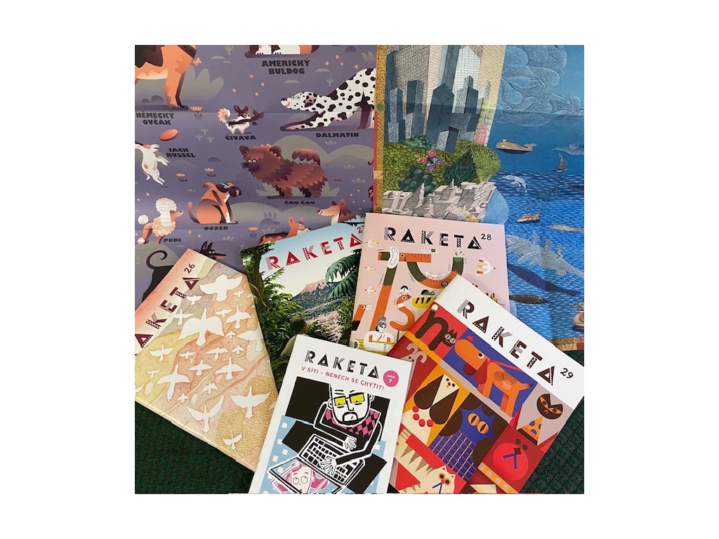 Ročník 2021 – témata: PTÁCI, AFRIKA, O PSANÍ, PSI & KOČKY, jako bonus dostanete sešit RAKETA mini: V síti (jak se bezpečně pohybovat na sociálních sítích), plakát koláže obrázků Petra Síse od Míši Kukovičové a plakát psích plemen od Antimultivitamina.
