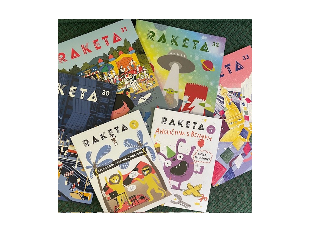 Ročník 2022 – témata: MĚSTO, SPORT V PLAVKÁCH, UFO, NA HORY, jako bonus dostanete dva sešity Raketa mini: Leopoldova finanční poradna (o finanční gramotnosti) a Angličtina s Bennym