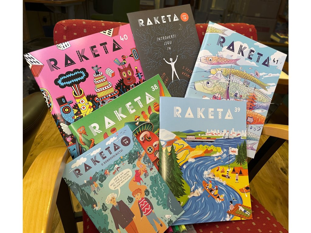 Ročník 2024 – témata: JABLKO, ŘEKA, SLAVNOSTNÍ ČÍSLO, JAPONSKO + jako bonus dva sešity Raketa mini: Dobrovolnictví (vznikl ve spolupráci s Nadací Olgy Havlové) a Introverti jsou in (o citlivých povahách a introvertech).