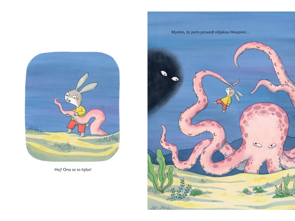 Příběh králíčka Hopa a tajemného jezera, jehož hlubiny ukrývají mnoho pokladů a také kus velké odvahy. Nejnovější kniha od francouzsky píšící spisovatelky, výtvarnice a ilustrátorky z Kanady.